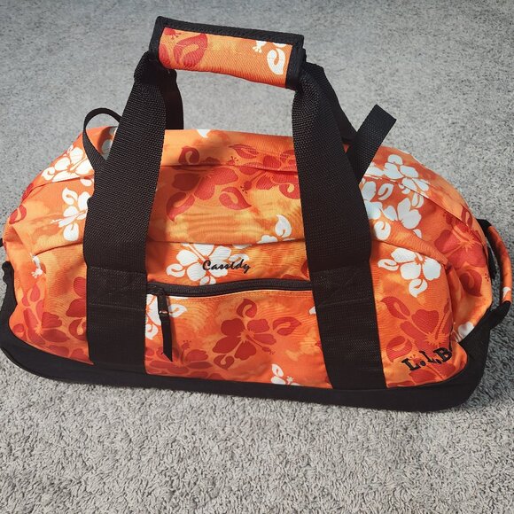 LL Bean XL Rolling Duffle Bag Orange Hibiscus Floral No Shoulder Strap