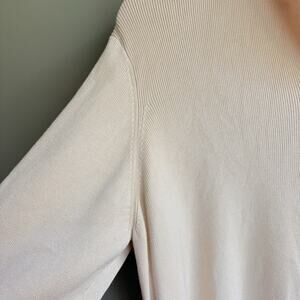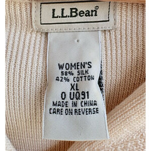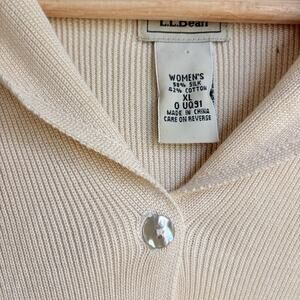 LL Bean XL Silk Cotton Cardigan Sweater Neutral Cream Shawl Collar Minimalist