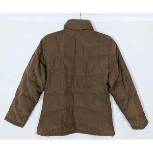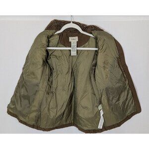 LL Bean XS P Quilted Insulated Jacket Brown Goose Down Sherpa Collar Faux Suede