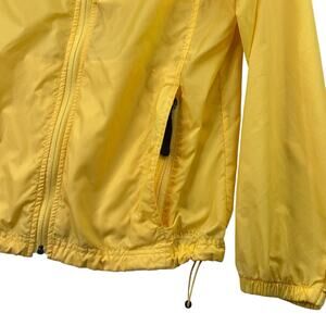 Brighten up any rainy or windy day with this vibrant yellow L.L. Bean windbreaker jacket. Lightweight and versatile, it’s perfect for layering in spring, summer, or fall. Features a stand collar, stowaway hood, zip front, adjustable drawcord hem, and zippered pockets to keep essentials secure.