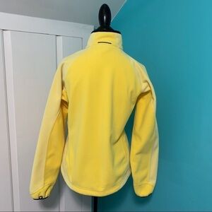 Beautiful yellow color block fleece zip up w/ black trim. Polartec. 100% Polyester. This was a layer of a 3 in 1 jacket, that was never used and in excellent condition. Only flaw is 1 faint mark shown in last pic. Machine wash, tumble dry. 2 front zippered pockets. Zipper garage to keep it comfortable on your chin. Pull cords on the bottom inside to make a secure fit. Longer in the back. Measures approximately: 20 1/1” armpit to armpit, 22” armpit to cuff, 15” armpit to hem, 23” shoulder to hem.