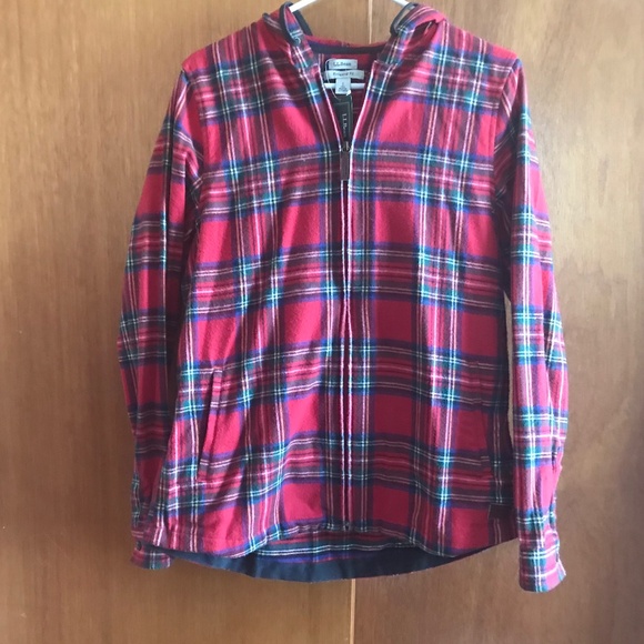 LL Bean Zip Front Hoodie Red Plaid size small tall