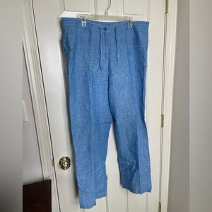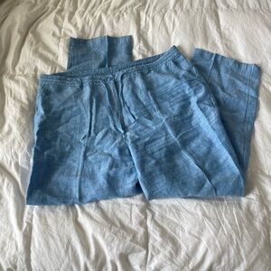 L.L. Bean chambray blue 100% linen pants elastic tie waist | 18