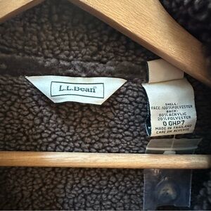 LL Bean chocolate brown fur lined jacket button up jacket coat faux suede