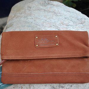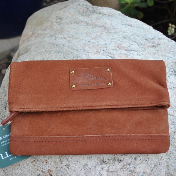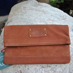LL Bean clutch dark amber suede dimensions 9.25 x 5.5 new