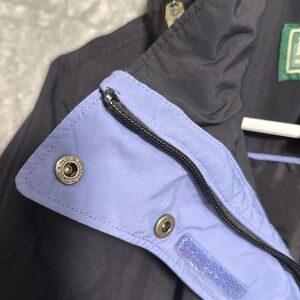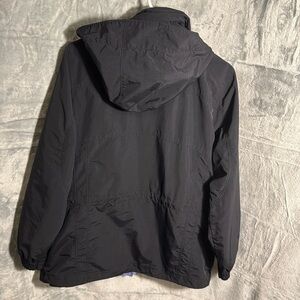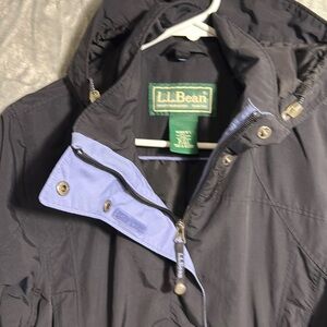 LL Bean coat women’s medium petite black with purplish blue acce