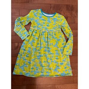 Teal Blue Strioed Lime Green Butterfly Print dress aged 10 years