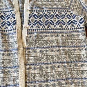 Perfect winter button up Fair Isle cardigan from LL Bean. Cotton and cashmere blend.