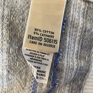 LL Bean cotton/cashmere cardigan. Ice blue, silver/gray, white winter sweater.