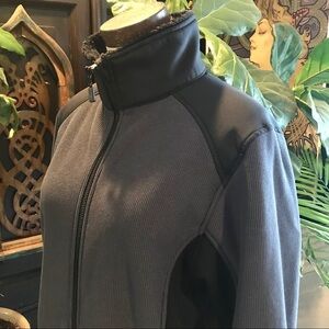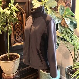 LL Bean dri-fit fleece athletic thermal jacket. Gray with blue base. Fleece lined. Measurements are approximate lay flat