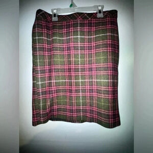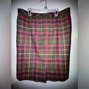 LL Bean favorite Fit women’s skirt Pink green Plaid midi Size 8 REG vintage