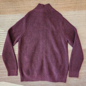 Full zip sweater in a thick nubbly waffle knit. Rich burgundy color. Measurements in pictures
