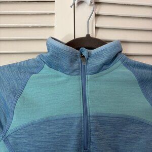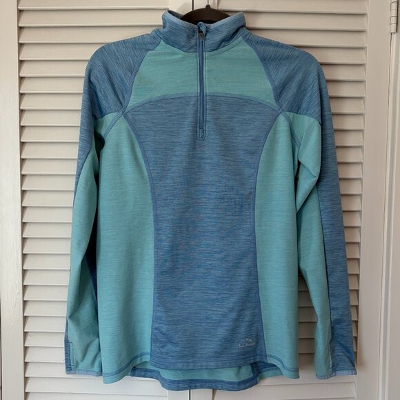LL Bean kids quarter-zip pullover top, size XL (18). Two-tone blue and mint. Machine washable. Gently worn, in excellent used condition. No rips or stains.
