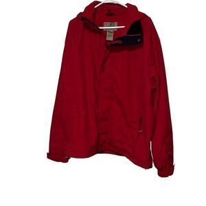 L.L. Bean mens Jacket Size Large Hood Red & Black Pockets Lightweight