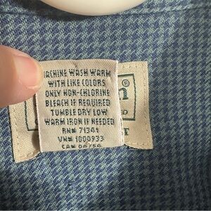 Gorgeous blue/green and navy houndstooth patterned flannel made by LL Bean. Button down collar, front breast pocket. Size Large Tall.