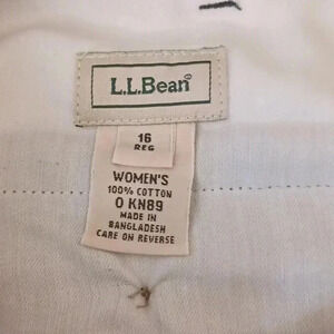 LL Bean size 16 pants in good used condition. There are no apparent flaws. They have a straight leg, two front pockets, and one back pocket with a button. there are belt loops, and the front has a zipper fly with a button. lying flat, the waist measures 18 in. The inseam measures 29 inches . they come from a non-smoking no pet home.