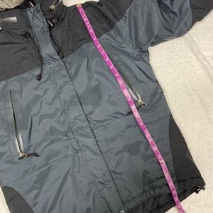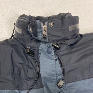 Vguc pfsf hood rolls into the collar zip front pockets and zip inside deep pockets zip up velcro front and cuffs nice warm winter snow jacket petite small no stains, tears or holes only worn a few times