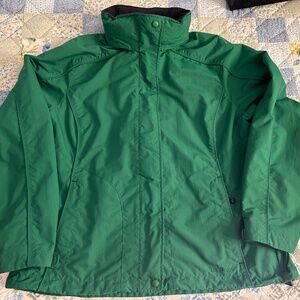 Size large (14-16) Rain shell in very good condition. The color is Kelley green more like the color in the last three photos.