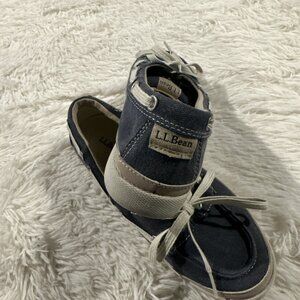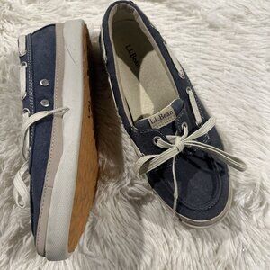 LL Bean womens 7.5 Medium comfort boat shoes blue tie preppy timeless