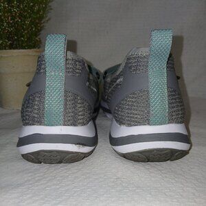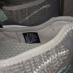 These are in pristine condition.  gray with seafoam green accent.  mary jane mesh shoe, adjustable velcro strap.