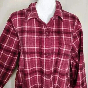 L.L. Bean women's button-down fleece plaid long sleeve top size medium. Oversized. So soft! In excellent pre-owned condition. No flaws. Measurements are approximate and taken flat while buttoned.