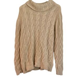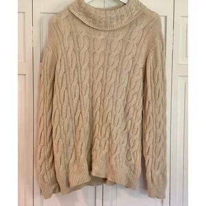 L.L. Bean wool ivory cableknit turtleneck sweater xl petite