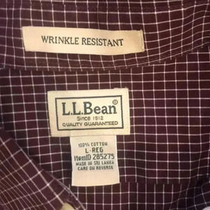 NWOT LLBean shirt maroon check, wrinkle resistant Large-Reg