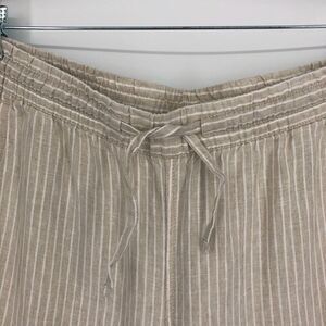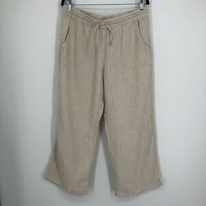 L.L. Bean cream and white stripe 100% linen pull on lounge pant. Drawstring tie waist. Elastic waist. Pockets. Size womens 12 Petite.