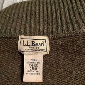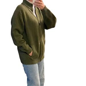 LL Bean Green Khaki Wool Chunky Oversized Full Zip Sweater Cardigan Grunge XXL
