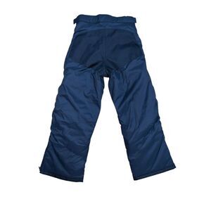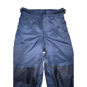 Black insulated snow pants. Waterproof, breathable, fully seam sealed. EZ Grow leg at hem and inside lining. Adjustable waist tabs with Velcro closure. Secure-zip handwarmer pockets. Zip-fly. Ankle gaiter with gripper elastic. Reinforced cuffs at hem. Reinforced rear and knee patches. Shell: 100% polyester. Lining: 100% nylon. Insulation: 100% polyester. Size: 8. Preowned in good condition.