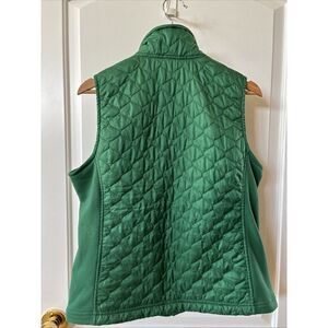 L.L. Bean Vest Women's Medium Green Quilted Fleece Pockets fall hiking gameday