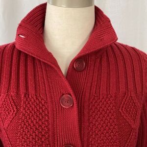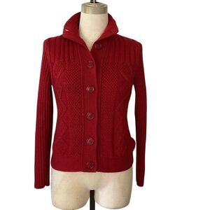 L.L. Bean Women's Signature Fisherman Sweater Cardigan Small Red Cable Knit