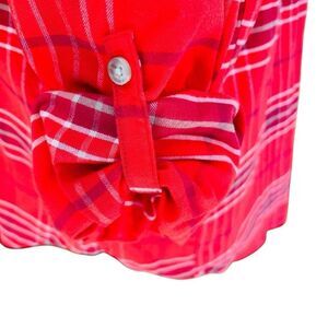LL Bean cotton blend button front plaid tab sleeve shirt size M.