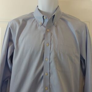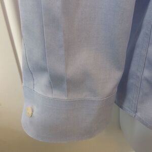 L.L.Bean light blue long sleeve wrinkle free slim fit button down shirt. Shirt has small tear all right sleeve please refer to picture 12, and monogram on cuff of left sleeve please refer to picture 13.