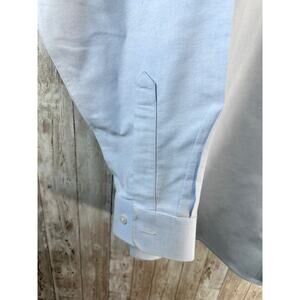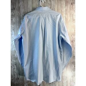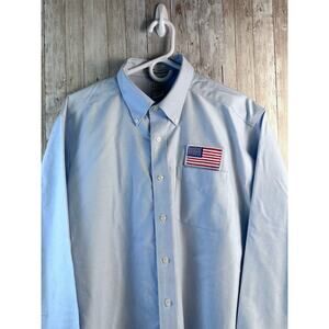 LL Beans Button Down Shirt Mens LT Blue American Flag Wrinkle Resistant #219401
