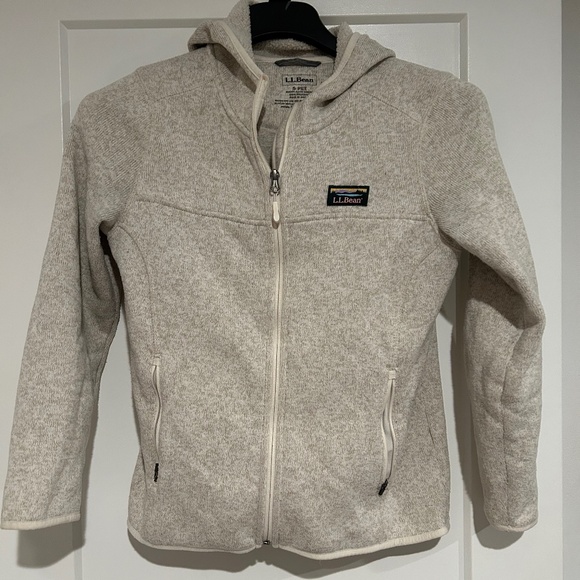 L.L. Bean's Sweater Fleece Full-Zip Hoodie Women's Petite Small in Cream/ Sailcloth. See photos for measurements.