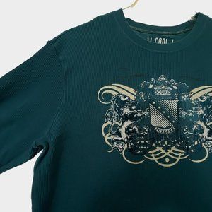 LL Cool J Thermal Waffle Shirt Long Sleeve Pullover Graphic Blue Mens XXL 2XL