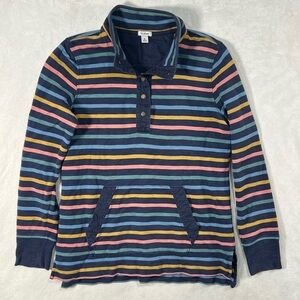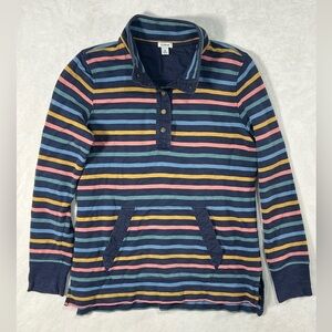 L.L. bean Men’s Size Medium Snap Navy Stripe Pullover Sweater Cotton EUC