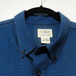 LL bean Mens Wicked Good Flannel Shirt Size L Slightly Fitted Blue Houndstooth