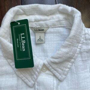 LL bean NWT Women’s Long White Linen Button Down Shirt LS Top Size Small