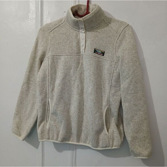 LL. bean Sweater Fleece Pullover Snap T Womens Small cream