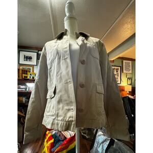 LL bean Womens Tan Button Up Casual Jacket Size Large 100% Cotton