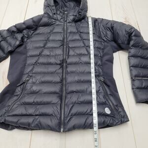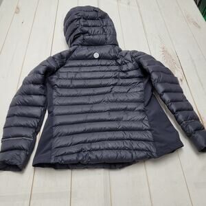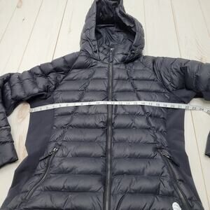 High quality LL Bean puffer coat! Down filled with comfortable side stretch panels. Gently worn, has a few faint marks on the front and some pilling on the sleeves but no rips or severe wear. Size large petite. I thought this jacket was black at first but I think its actually a very dark blue.