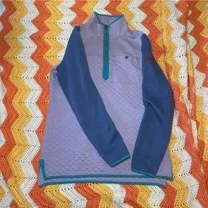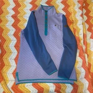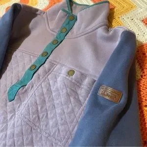 Vintage LL bean- very sturdy and rich material. Padded and warm material. Has vintage tag, patch, and buttons. So freaking cute. Front is shorter than the back.