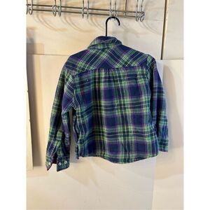 Ll bean flannel snap buttons size 4 rn#71341. measures 13" chest, 14" long. 100 poly, 100 cotton. blue green purple.