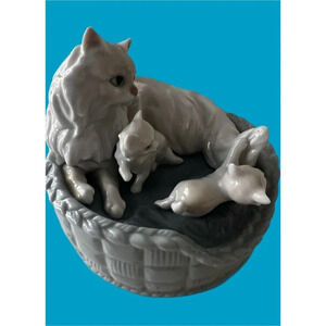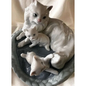 LLADRO #6652 "Kitty Care" Mother Cat in Basket w/ Kittens original box. New