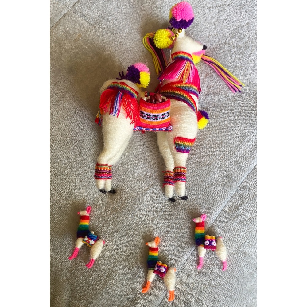SET OF 4 MAMA LLAMA & 3 LITTLE BABY LLAMAS THE BIG LLAMA HOLDS “GRAIN CROPS” ON EACH SIDE ITS A CUTE SET FULL OF COLOR HAND MADE 100% BOUGHT IN ECUADOR 🇪🇨