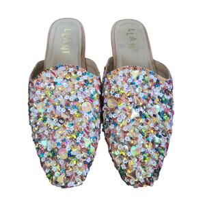 Party time! Our confetti slides are just what you need to lift your mood and start a party everywhere you go. These vintage inspired suede loafers are completely embellished by hand. Sequins in all shapes and colors create a stunning mix of texture and shine. Luxury meets effortless comfort with a memory foam cushioned insole.