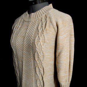 L.L.BEAN Scoop neck Crochet knit sweater XS Beige NaturalCable knit High quality