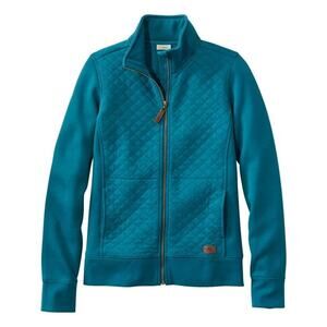 The product is a L.L. Bean Women's Quilted Full Zip Up Jacket in Deep Turquoise, size 2X Plus. This short-length jacket features a solid blue color with quilted accents, long sleeves, and a zip closure, making it perfect for casual occasions. The regular fit and plus size design cater specifically to women's needs. The jacket from L.L. Bean is known for its quality and classic style, making it a versatile and stylish addition to any woman's wardrobe.